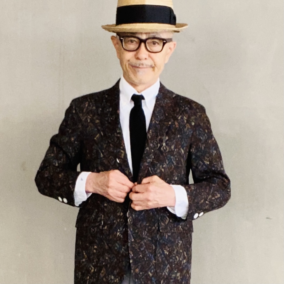 このような色柄のジャケットは、バティックといいます。60年代に大流行しましたが、現在は見当たりませんね、派手な柄の割には意外と合わせ易いので、カンバックさせて欲しいです。