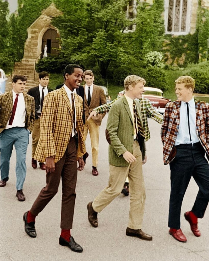 そこで、注目するのは、60年代アイビーの全盛期のスタイル。アイビー族のように極端にタイトフィットでなく、いわゆる本来のナチュラルショルダー、ボックスシルエットが特徴。これをハリウッドスターが上手く着こなしていますね。