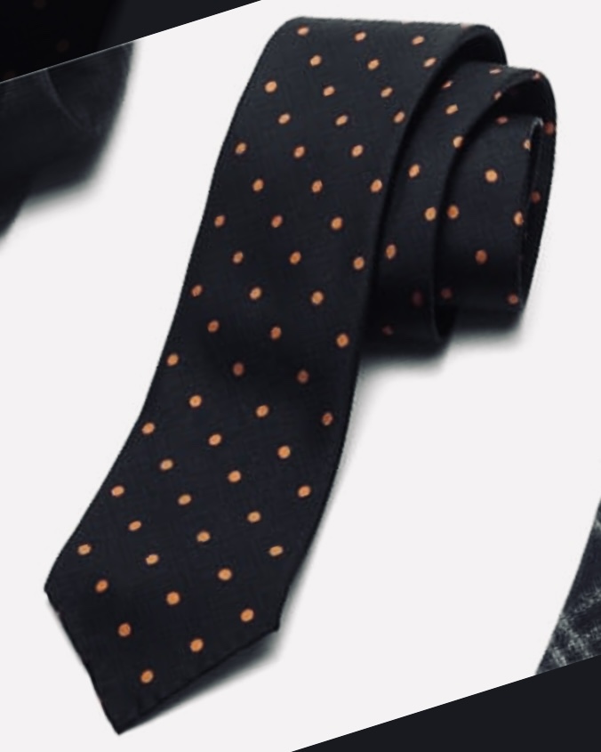 ドットタイで僕が好きな一つに、ポルカドットの黒ベースに赤い玉のドットタイ。一番スタンダードな大きさと配列、紺x白は勿論ですが、黒x赤のスカーフとか大好きです。