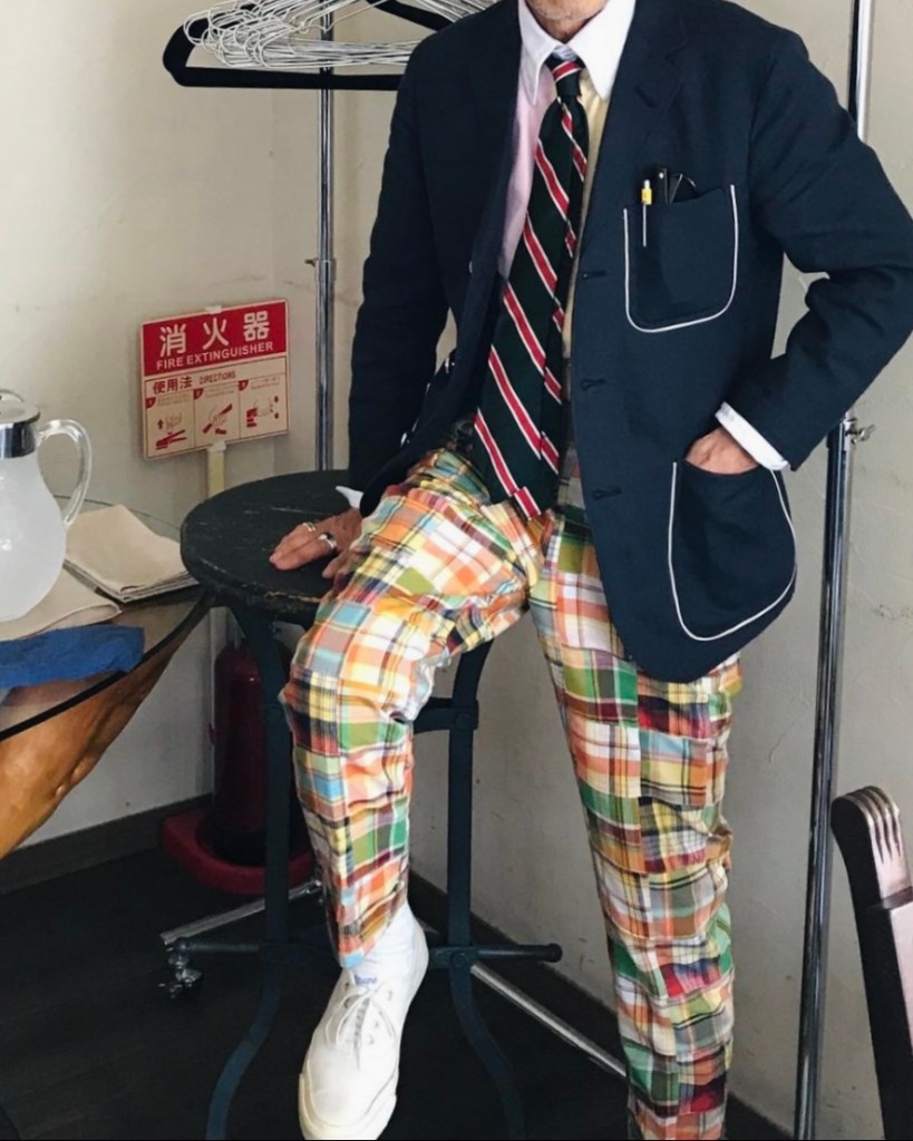 クレージーマドラスと呼ばれるパッチワークされたマドラス地も、ジャケットやショーツに使われて人気に。派手な柄がさらに派手になるのだが、何故かしっくりくると感じるのはアイビー派だけだろうか。民族調の一つとして考えると、そう派手にも見えないのかと。
