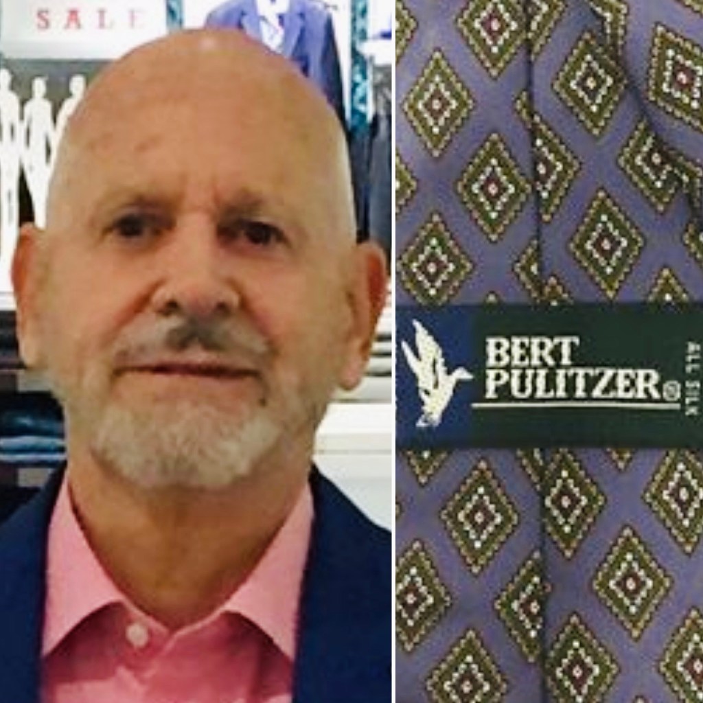 僕が、”Bert Pulitzer” ブランドを知ったのは、71年、ボストンのとあるデパートネクタイ売り場。イエローの素敵な小紋プリントタイがズラッと並べられていたので、手にとってラペルを見たのが最初。(それまで僕らには、バーガンディベースが主役だったので、イエローは非常に新鮮) それ以来そのブランドが気になって仕方がなかった。しかし当時のアメリカは、現在の日本の状況と似ていて、小売店はその店独自のネームラペルをつけていたので、なかなか見つけることはできませんでした。おそらくそこそこのお店では並べられていたと思いますが。その後、しばらく経過〜〜