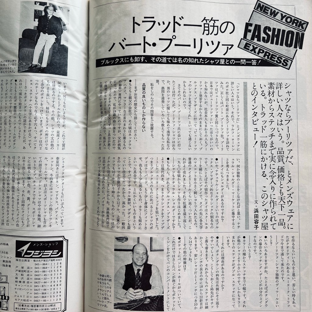 さて、バート・プーリツァの話に戻ります。”MENS CLUB” 1980/05号に、浜田容子さんのNew York Fashion Express 記事よりピックアップしました。
