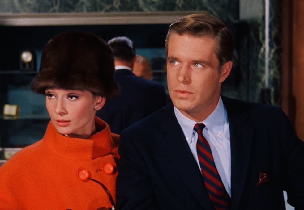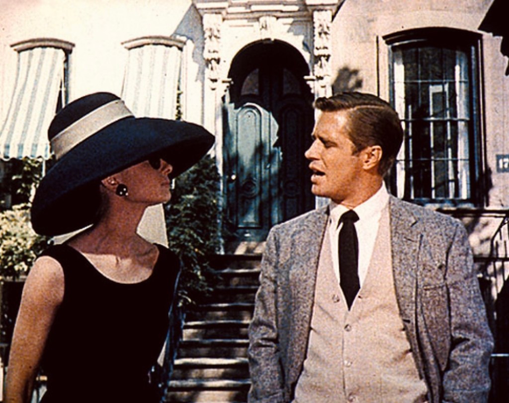 二人でティファニーに向かい5番街を散歩するシーンが圧巻ですね、ジョージ・ペパードは、ネイビーブレザー、裏が真っ赤、紺赤のレジメンタルタイを合わせ。