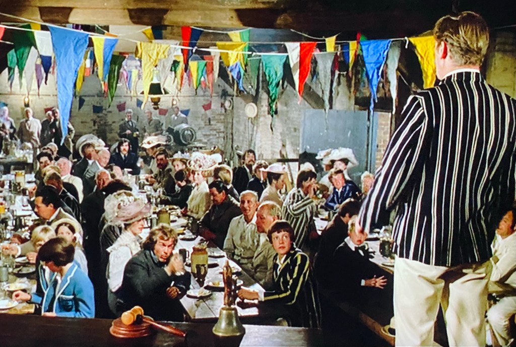 プレー終了後、両チームが一緒になり食事会、上流階級側は、ブレイザーを着用するが、労働者側は、ベストのままで。