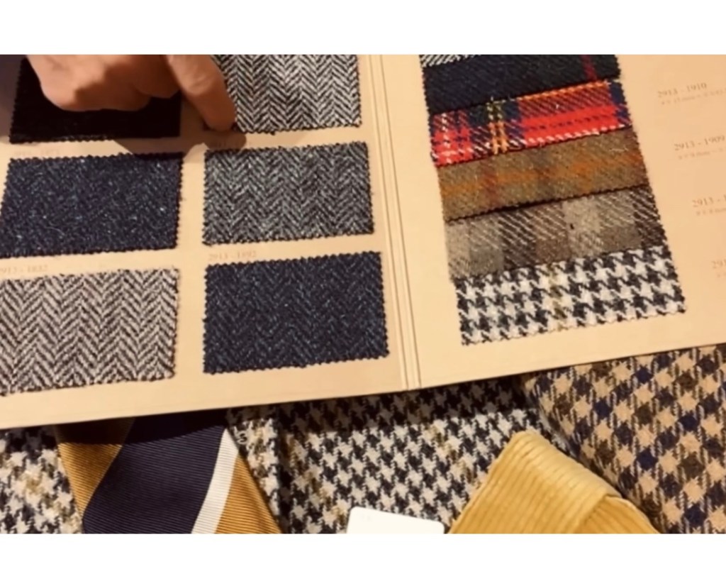 BEAM F の高橋さんに、今シーズンのツィードの話をお聞きしたところ、やはりヘリンボーン柄が一番人気とか。それもスーツにも使えるソフトで軽い、おそらくシェットランド系ツィード、商品が一番人気とか。訪問した時期が10月初めだったので、今後、木枯らしの時期になると、ガンクラブ・チェック・ハリスツィードが人気になってくるのではと、語られてました。