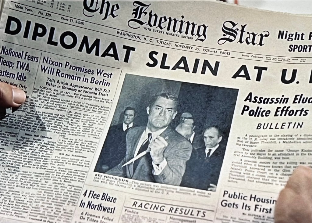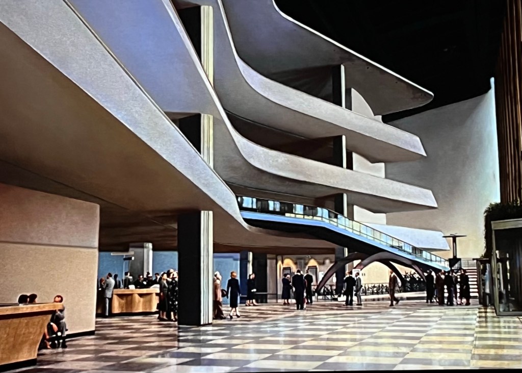 国連本部ビルでのシーン、設計は、当時の一流建築デザイナー達の政策委員会を中心に進められたそうですが、ル・コルビュジェもその一員で、そのフォルムも美しい。