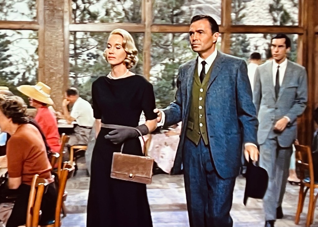 お次は列車内のカクテル・シーン、”ギブソン” をオーダーします。マティーニでないところが、監督ヒチコックらしいですし、またケーリーに似合います。(関係ないですが、マティーニならボンドです) 同じジンベースカクテルで、マティーニはオリーブを入れギブソンはカクテルオニオンを入れたものです。もっともプロ・バーテンダーに言わせると、作り方が変わるようですが。一見、マティーニよりも生成り色のオニオンが入るギブソンの方がエレガントに映ります。マティーニは、アルコールに強いアメリカンをイメージします。