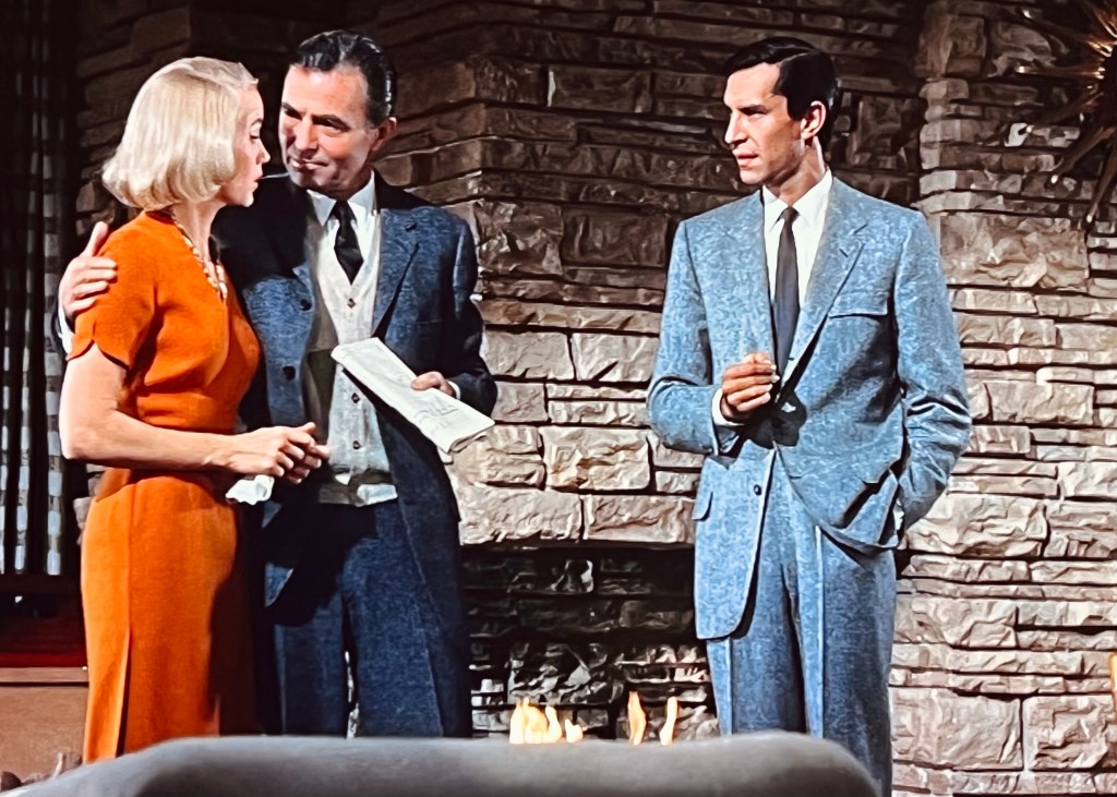 この映画、共演者もオシャレに迫ります。教授役のレオ・G・キャロル、いつもカッコいい脇役をしていますが、今回もコンチ・スタイルのグレースーツを決めてます。