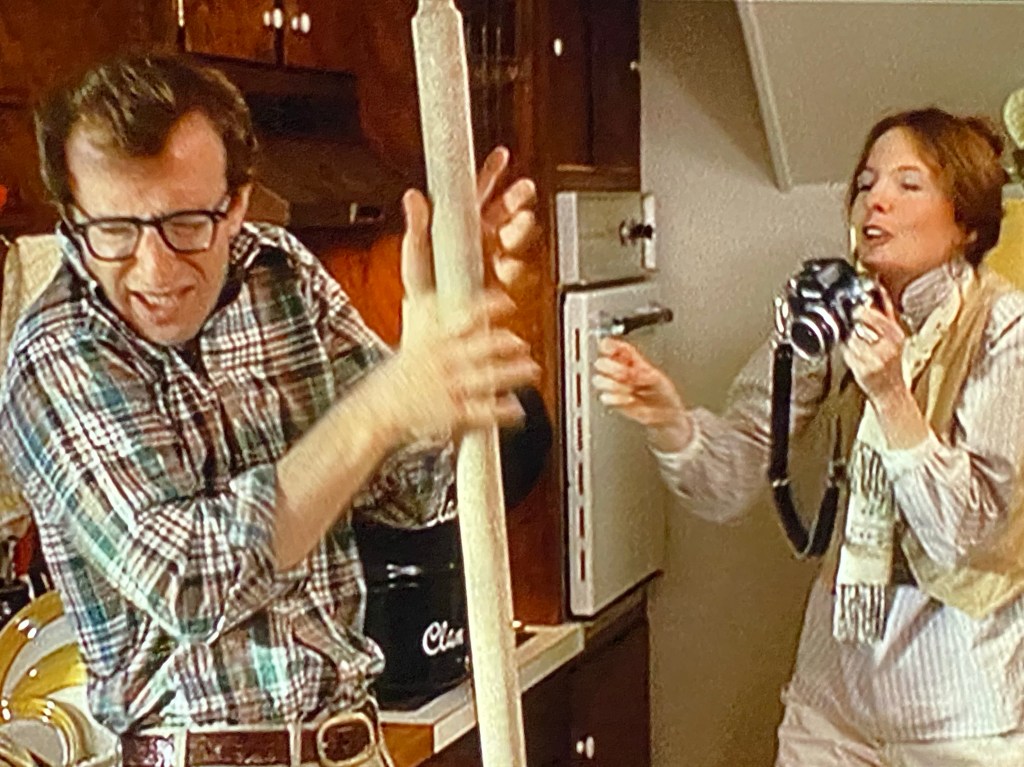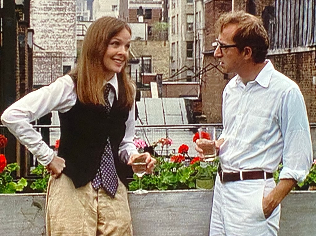 この映画、なんと言ってもアニー役のダイアン・キートンの魅力爆発!写真のポロ・メンズ・スタイルはアニー・ルックとして大ブレークしましたが、それ以上に彼女の発する奇声や小悪魔的な仕草に魅入られてしまいます。この映画で、ダイアンは、自分のキャラとか演技力とかに目覚めたのではないでしょうか。その後の、”ミスター・グッドバーを探して” “インテリア” “マンハッタン” “レッズ” で次々と魅せてくれました。