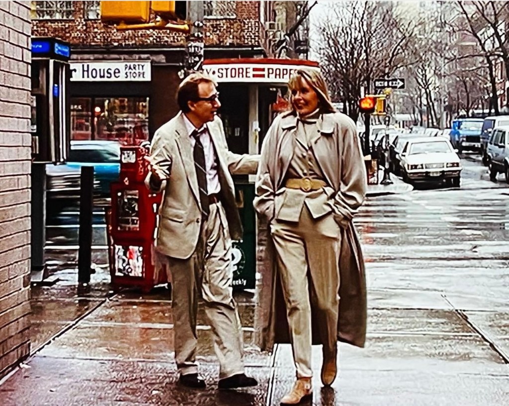 番外ですが、”マンハッタン殺人ミステリー”より、”アニーホール”から16年後の映画ですが、実生活で別れた二人は、相変わらずの名コンビ!二人のベージュ色コーディネートが素敵でした。
