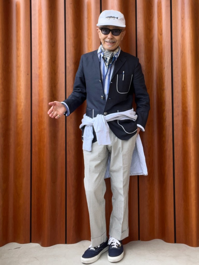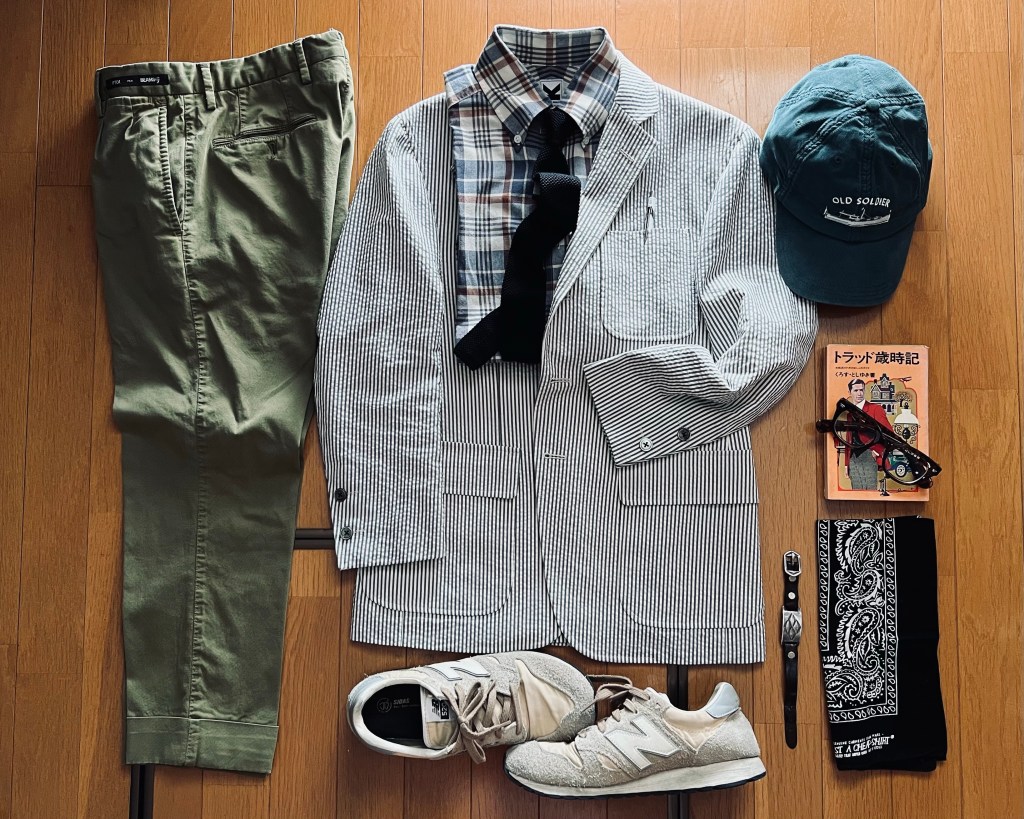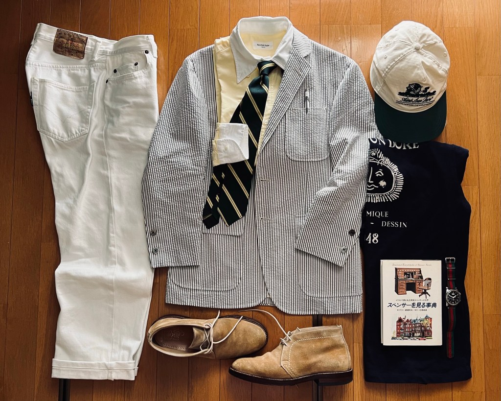 以上、僕のシアサッカー一週間スタイルでした。シアサッカーは、組み合わせが比較的自由で簡単。是非!皆さんも色々なトライを!