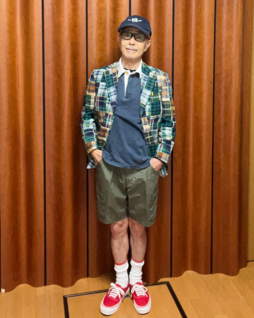 ハーフ・ショーツ、シェラ・デザインの60/40、それに今回はラグビーシャツを合わせた。ラグビーシャツも衿は白なので合わせやすいです。この様に見た目が派手なマドラス・ジャケットですが、合わせ方は実に簡単です。ゴテゴテした柄を持ってこなければ、ポロシャツ、Tシャツ、関係なく合わせてくれます。