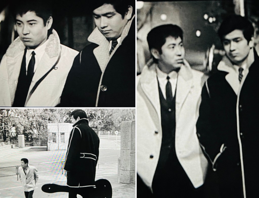 映画のシーンでも、VAN提供といった看板も出てきます。この映画では浜田光夫と共演、冬のスペクテーター・コートやランチ・コートを魅せてくれます。やはり山内賢そのものがVAN系のオシャレさんだったのでしょうね。65年頃はまだまだIVYスタイルも認知されてませんでしたから、俳優さんの中では稀だったでしょうね。