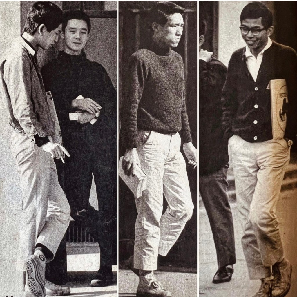 70年代初めまでは、メンズのオシャレさんはすべからくアイビーにハマりました。(現代では、モードにハマるエレガント志向の男たちも) だから後々のアイビー・ファンとの違いもあるのでしょう。