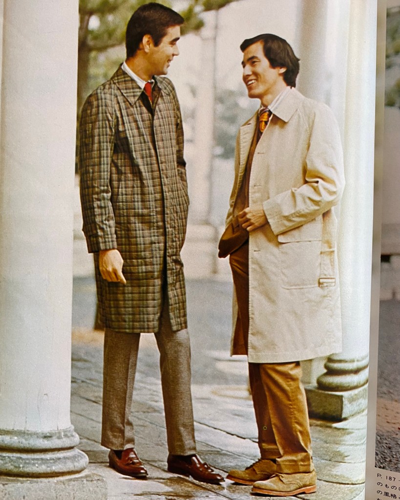 一般的には、バルマカーン・コートと呼びますが、我々昭和世代には、ステンカラー・コートという呼び名の方が落ち着きます。60年代VAN JACKETの石津謙介氏が名付け親ゆえ。