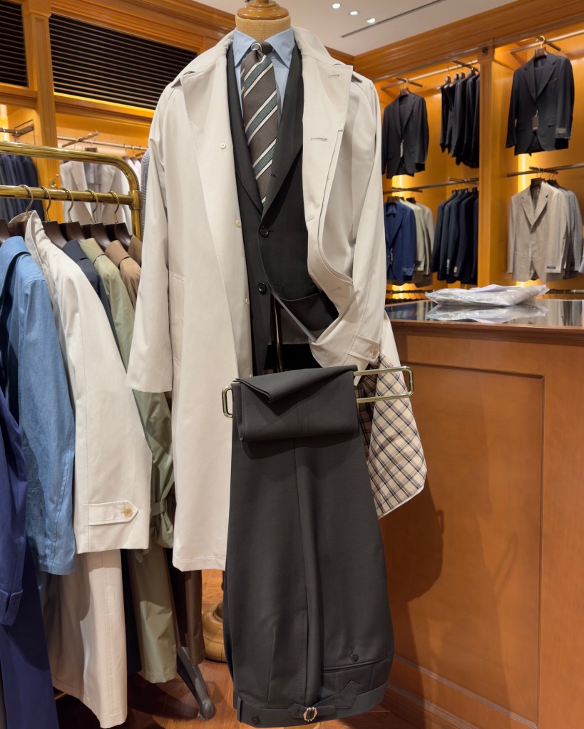 秋と春の入り口の季節は、バーバリーコットンの定番無地が渋い。そして、春の後半から夏場にかけては、写真のようなマドラスチェックのコットン・コートがクール。