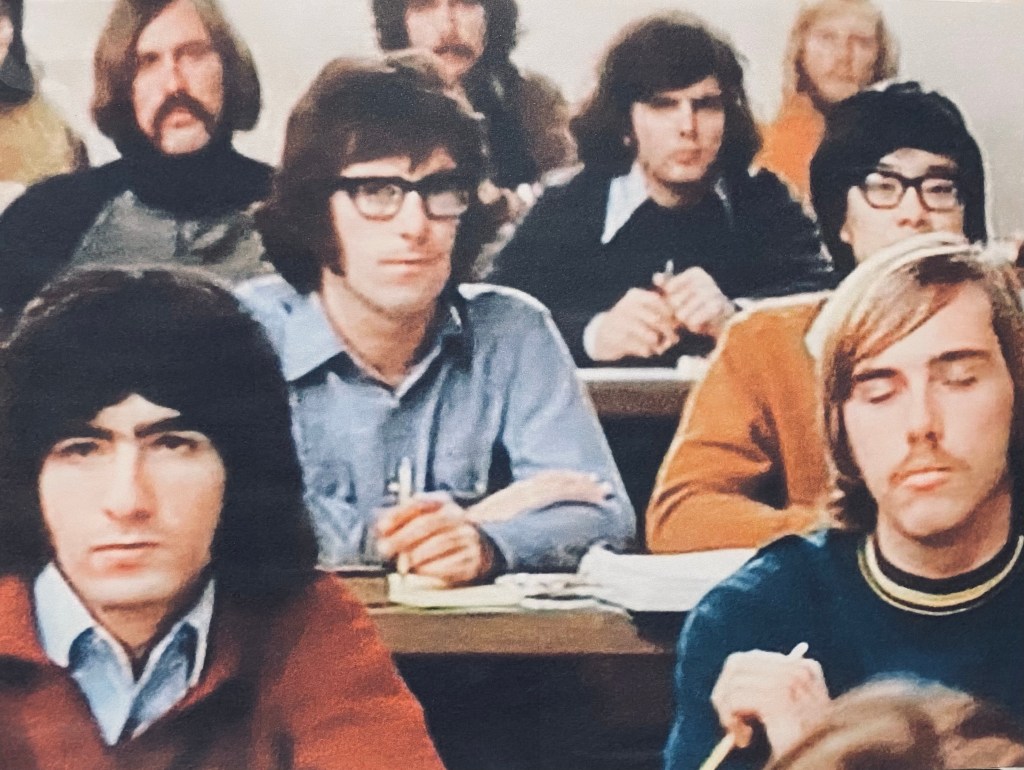 冒頭まず、新入生が列車でケンブリッジ駅に到着、カレッジ校に入学するところから。彼らのスタイルは、まだケンブリッジ学生でないので、庶民スタイルで。ツィードスーツにキャスケット帽。(キャスケットと言うのは、フランスに伝わる名称だが、今回はあえて使いました) 彼らも、入学後は、ボーラーハット(山高帽) をかぶる。