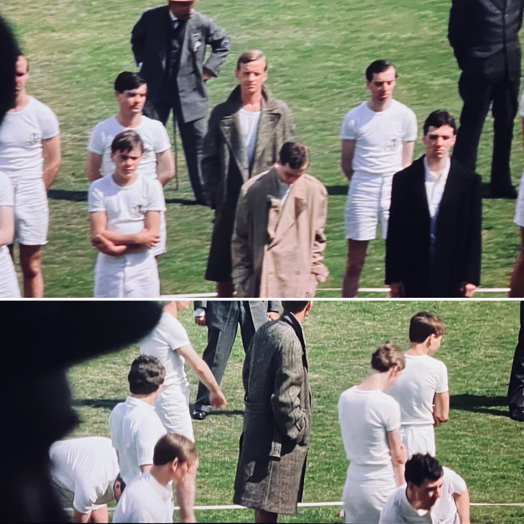 さて、新入生の催しシーンが楽しい。ケンブリッジ校は、カレッジ制で各学寮にそれぞれ所属する。トリミングブレザー、ローイングブレザー、チルデンセーター、スクールマフラー、クリケットキャップ、ボーター、アイビー少年憧れのアイテムがゴク普通に観られる。