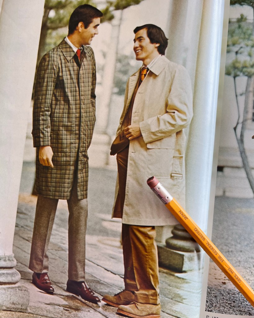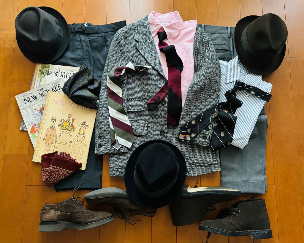 しかし、まずはドレスコードを順守すれば、いやでも他のアイテムは決まってくるでしょう。このようにやたらと面倒くさいルール事があるから、アイビーはやめられません。肩線ステッチ、背のフックベントがなくても、まだ許せますが、ラペルとポケットにステッチのない服などクールでないですね。勿論、ナチュラル・ショルダーあっての話です。