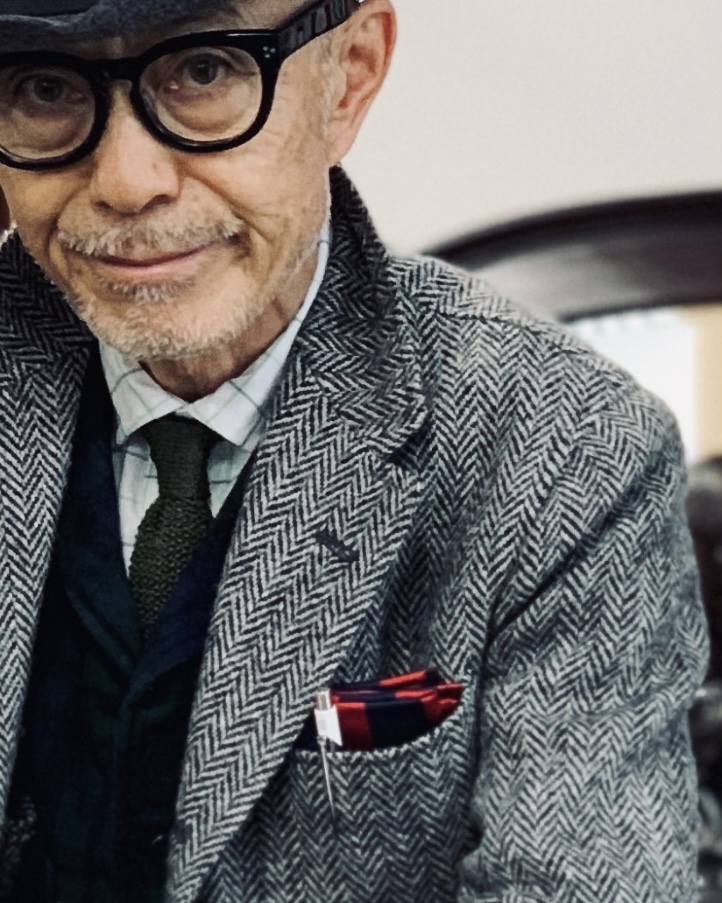 真っ直ぐに切られたスクェアフラップ・ポケット、ウェルト・ポケット、箱ポケット、パッチポケット、どちらの場合もステッチがしっかりかかっている。ボタン位置との関係では、アバウトだが、第一ボタンは、胸ポケットより1cm 下に、第三ボタンは、脇ポケットの位置に、これが目安となる。 このルールもモデファイモデルで、170cm以下の日本人にもフィットする仕様が生まれる。
