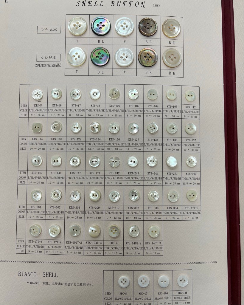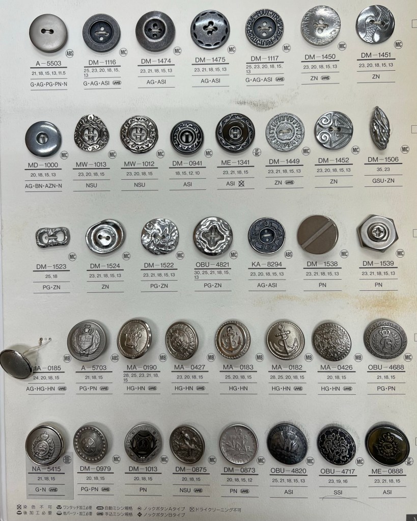 多くは、シングルの三ツボタン、上二つ掛けだが、古くはダブルの六ツボタンもあった。ボタン間隔は、12~13cm と、広め。長方形シルエットとなり背の高い人が似合う、その後モデル体型以外の人にも似合うようモディファイモデルが出来た。ボタン間隔も10~11cmとなる。ボタンのサイズは、小さめで(18~19mm)